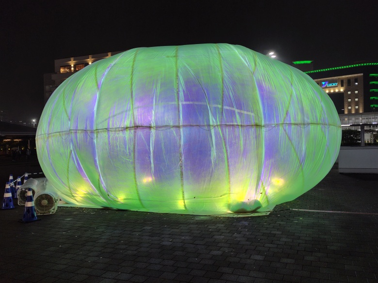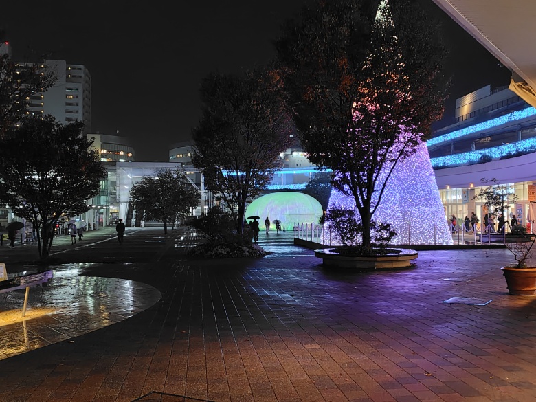 この期間は,このショッピングモール前の広場にイルミネーションが設置されているようだった。たまたま夜に来ていたので,光彩が綺麗だった。