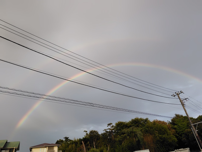このように二重になっている虹は「ダブルレインボー」と言い,この写真で言えば,下の色がはっきりしているものを「主虹」,上の薄いものを「副虹」と呼ぶらしい。