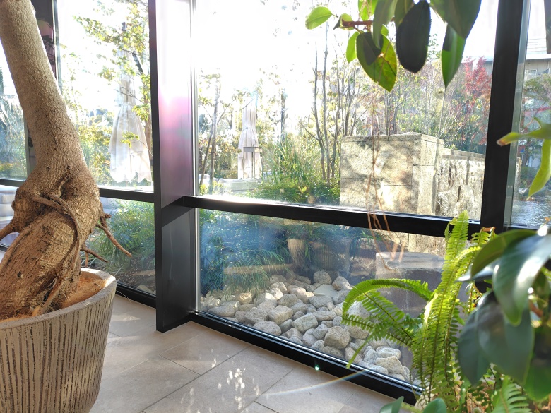 それでそちらの方向に向かっていったのだが,ふとこのカフェを思い出し,日差しの方向を考えたとき,運良く端の席が空いていれば,丁度サンルームのような居心地になるのではないかと思ったわけだ。
